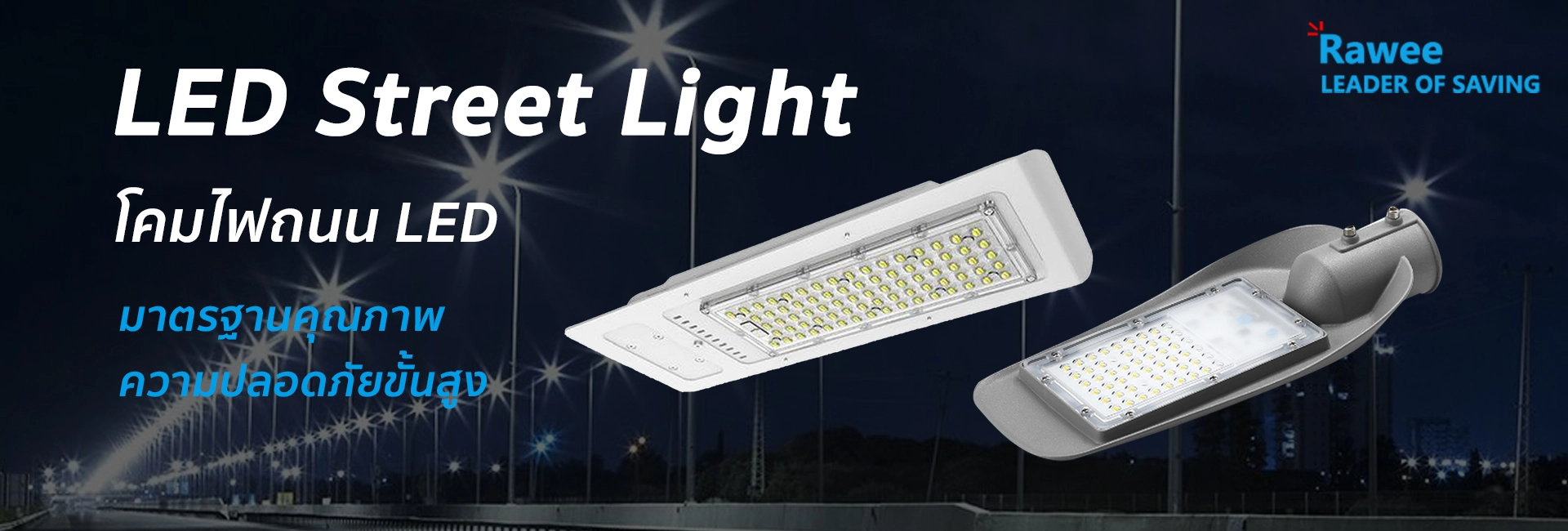 โคมไฟถนน ( LED Street Light ) ” โคมไฟถนน LED ” การันตีความมั่นใจในคุณภาพ อุปกรณ์ครบชุดพร้อมติดตั้งในทันที ตัวโคม ไฟถนน ผลิตจากวัสดุอุปกรณ์ที่มีคุณภาพดีเยี่ยม แข็งแรงทนทาน ป้องกันน้ำได้รอบทิศทาง มั่นใจได้ในเรื่องของความปลอดภัย ดีไซน์ที่สวยงามสะท้อนรูปทรงที่เป็นเอกลักษณ์ทันสมัย